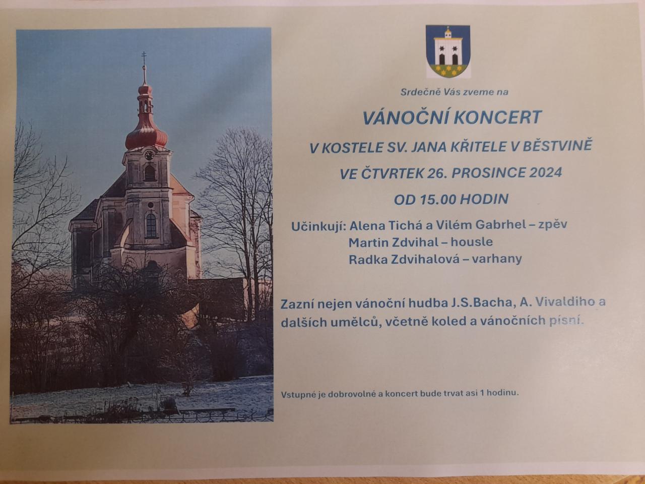 Pozvánka na vánoční koncert v Běstvině